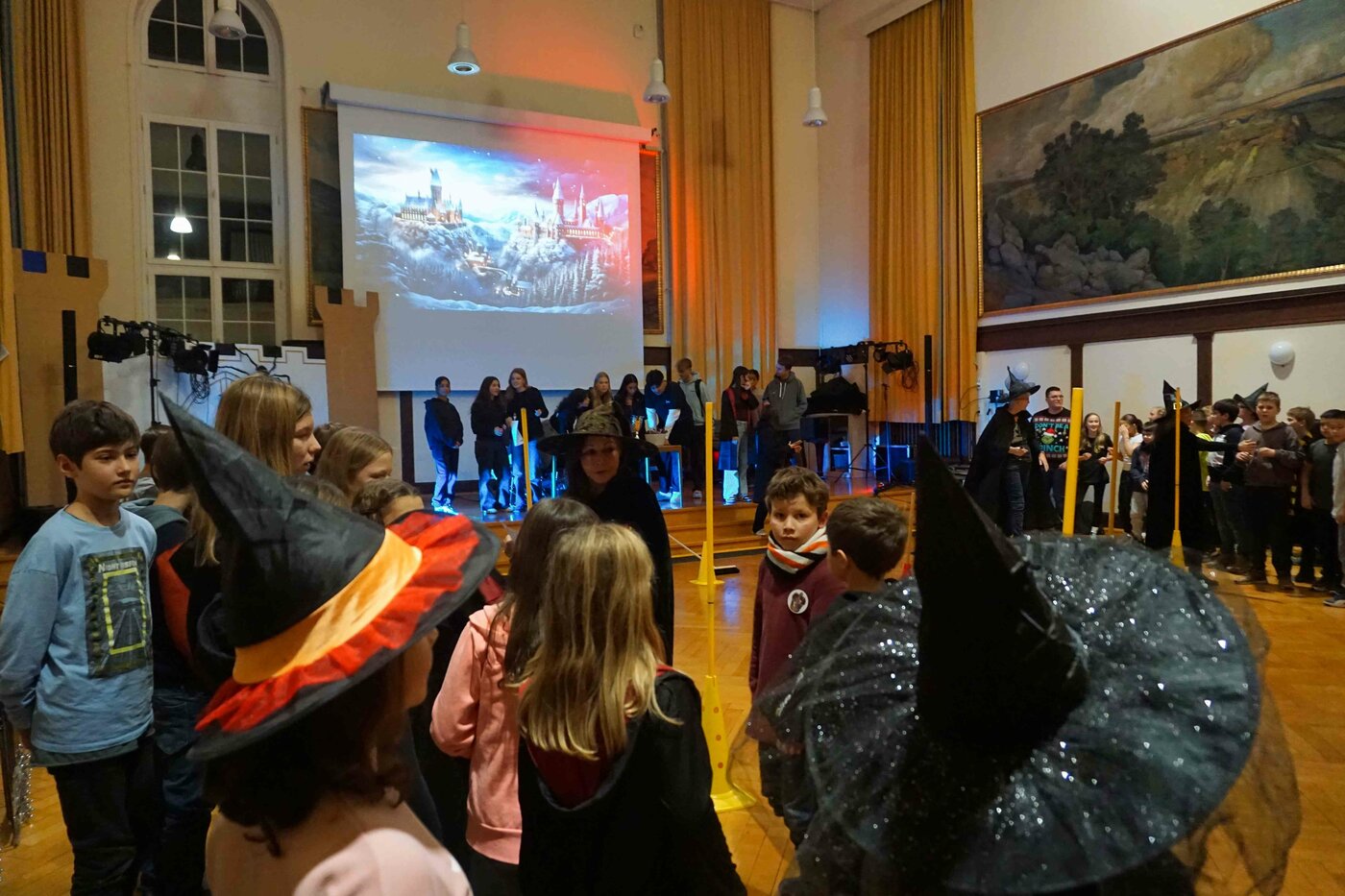 Wenn sich am Leseabend die Tore des Albert Einstein Gymnasiums öffnen, ist nichts mehr, wie es am Morgen war. Die bekannten Lehrer wurden durch Hexen und Zauberer ersetzt, die in langen Zaubermänteln durch das Gebäude schreiten und mit ihren Zauberstäben für Ordnung sorgen. In die Aula kommen die Schülerinnen und Schüler nur mit einem gültigen Fahrschein für den Hogwarts-Express, den sie von ihren Vertrauensschüler ausgehändigt bekommen. Die Häuserzuteilung wird von einem sprechenden Hut vorgenommen, der anscheinend sehr gut über das Lehrpersonal Bescheid weiß.
