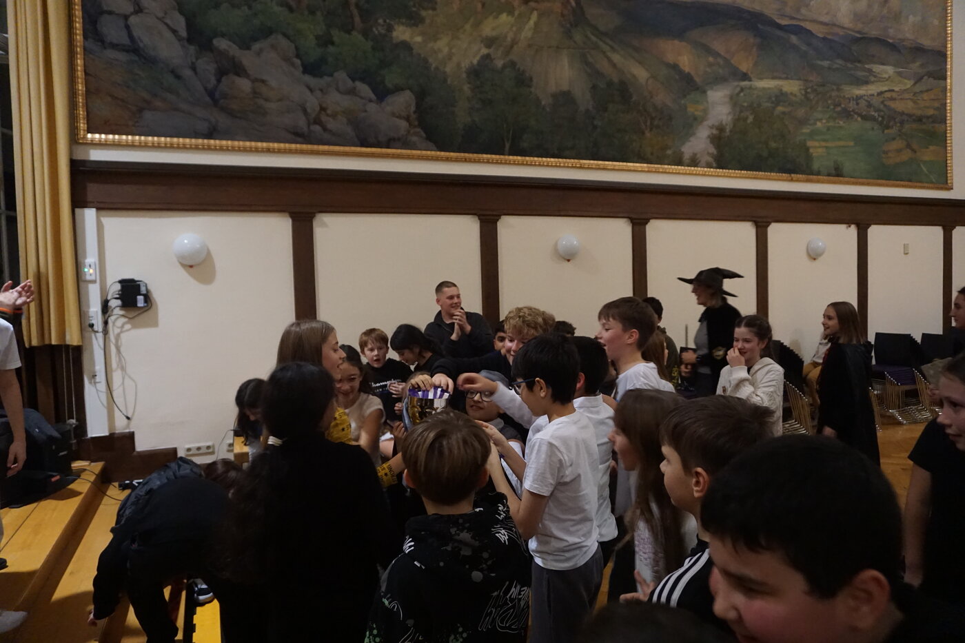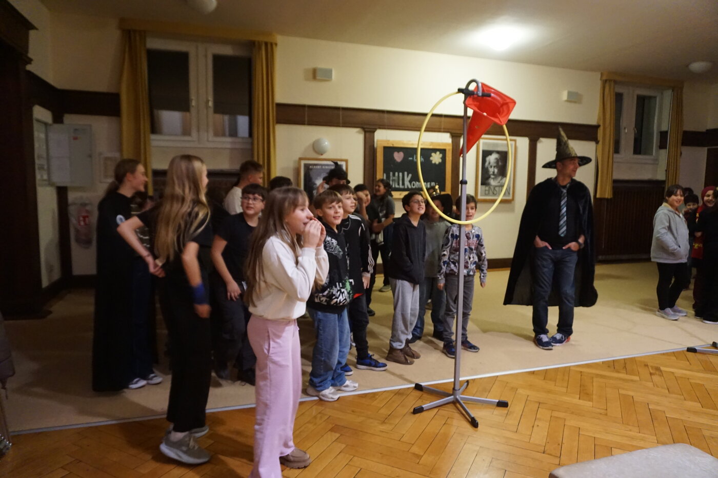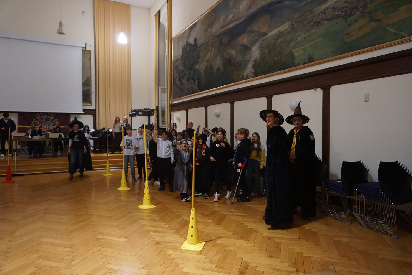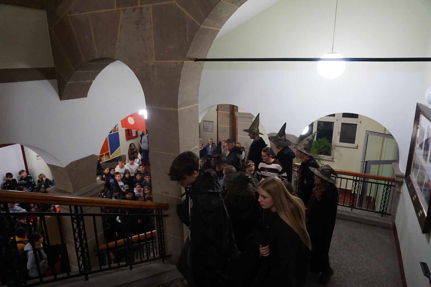 Für die 5. Klassen fand am 14. November der „schönste Tag des Jahres“ statt. So versprach es der stellvertretende Schulleiter Dr. Markus Schmitt, als er die jungen Zauberer und Hexen begrüßte. Auf magische Weise hatten sich die bekannten Lehrer ebenfalls in Hexen und Zauberer verwandelt. Und auch die Klassenräume ließen sich nicht wiederkennen, denn sie waren von fleißigen Hauselfen geschmückt worden. Nach der Begrüßung durch den sprechenden Hut, gingen alle gemeinsam mit ihren Lehrern und Paten in die Gemeinschaftsräume ihres Hauses. Im Schein von Kerzen und flackerndem Kaminfeuer wurden Geschichten vorgelesen.