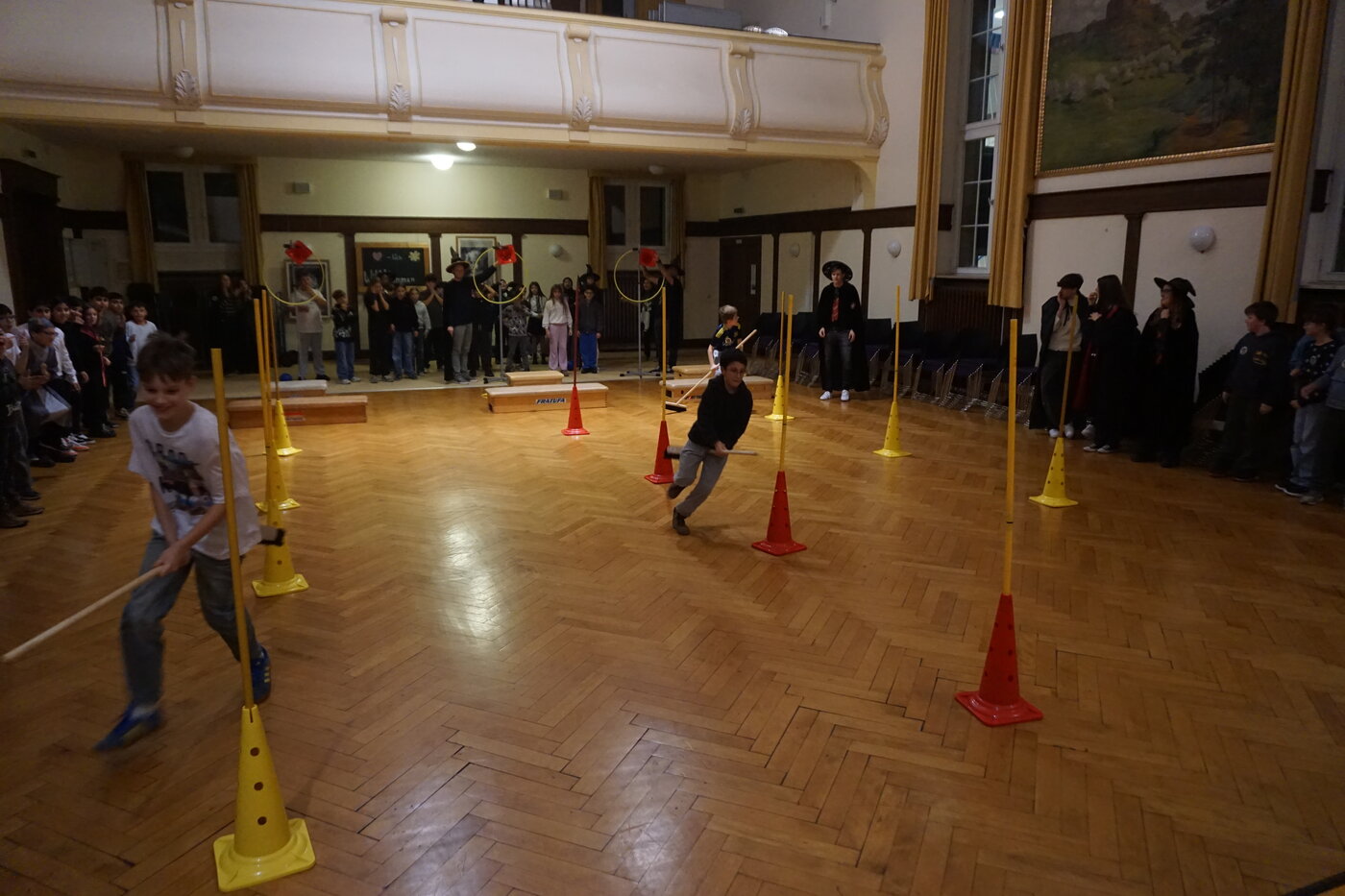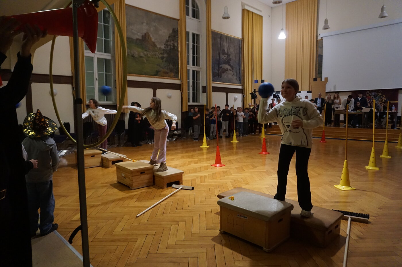 und Hexen um Hindernisse herum und mussten mit dem „Schnatz“ ein Tor erzielen.