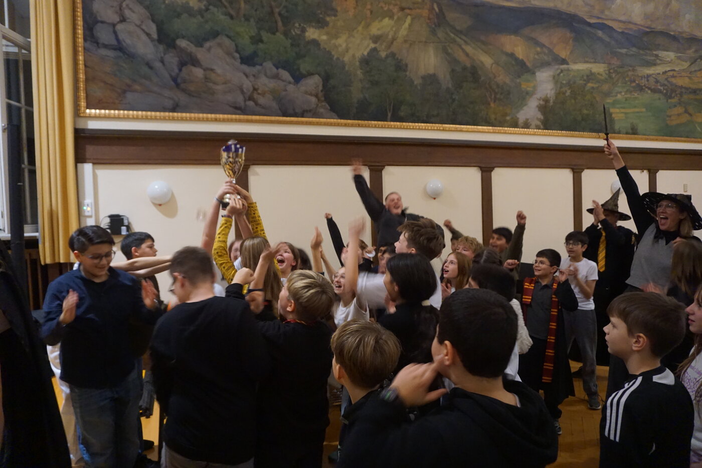 Die Siegerklasse erhielt in einer feierlichen Zeremonie den Hauspokal. Die Freude über den Gewinn des Hauspokals bei „Hufflepuff“ war riesengroß und der Hauspokal wird sicherlich einen besonderen Platz im Klassenzimmer erhalten, bis er im nächsten Schuljahr weitergegeben wird.