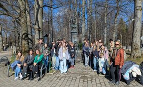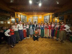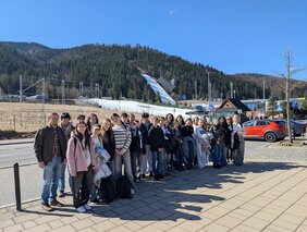 Am 2. April trafen wir uns alle früh morgens am Bahnhof und schon konnte die lang ersehnte Reise beginnen. In Krakau angekommen, wurden wir an der Schule von unseren Austauschpartnern schon herzlich empfangen. Nach einem Jahr und 1150 Kilometern zwischen uns war die Wiedersehensfreude sehr groß. Noch am selben Tag fuhren wir alle gemeinsam nach Zakopane in die Berge, wo wir die nächsten zwei Tage verbrachten. Wir besichtigten den Ort, genossen die Aussicht auf die Landschaft, (aßen ganz viel Kartoffelpüree:)), besuchten einen folkloristischen Workshop, bei dem wir traditionelle Tänze kennenlernen durften und verbrachten tolle Abende zusammen.