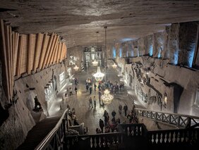 Am Freitagnachmittag ging es dann für uns in die Gastfamilien, bei denen wir das Wochenende verbrachten und verschiedenste Aktivitäten unternahmen. Am Samstagmorgen trafen wir uns jedoch noch einmal alle vor der Salzmine in Wieliczka. Dort bekamen wir eine Führung durch die Hallen und Gänge, die sich 327 Meter in die Tiefe erstreckten. Besonders beeindruckend waren die Statuen aus Salz und die unterirdischen Grotten. Montagmorgens ging es dann für unsere Gruppe nach Krakau in das Hotel Alf. Den restlichen Tag verbrachten wir mit dem Backen von Obwarzanki (ein traditionell polnisches Gebäck), einer Stadtrallye durch die Innenstadt und einem abendlichen Spaziergang am Wasser der Weichsel entlang (dem längsten Fluss Polens).