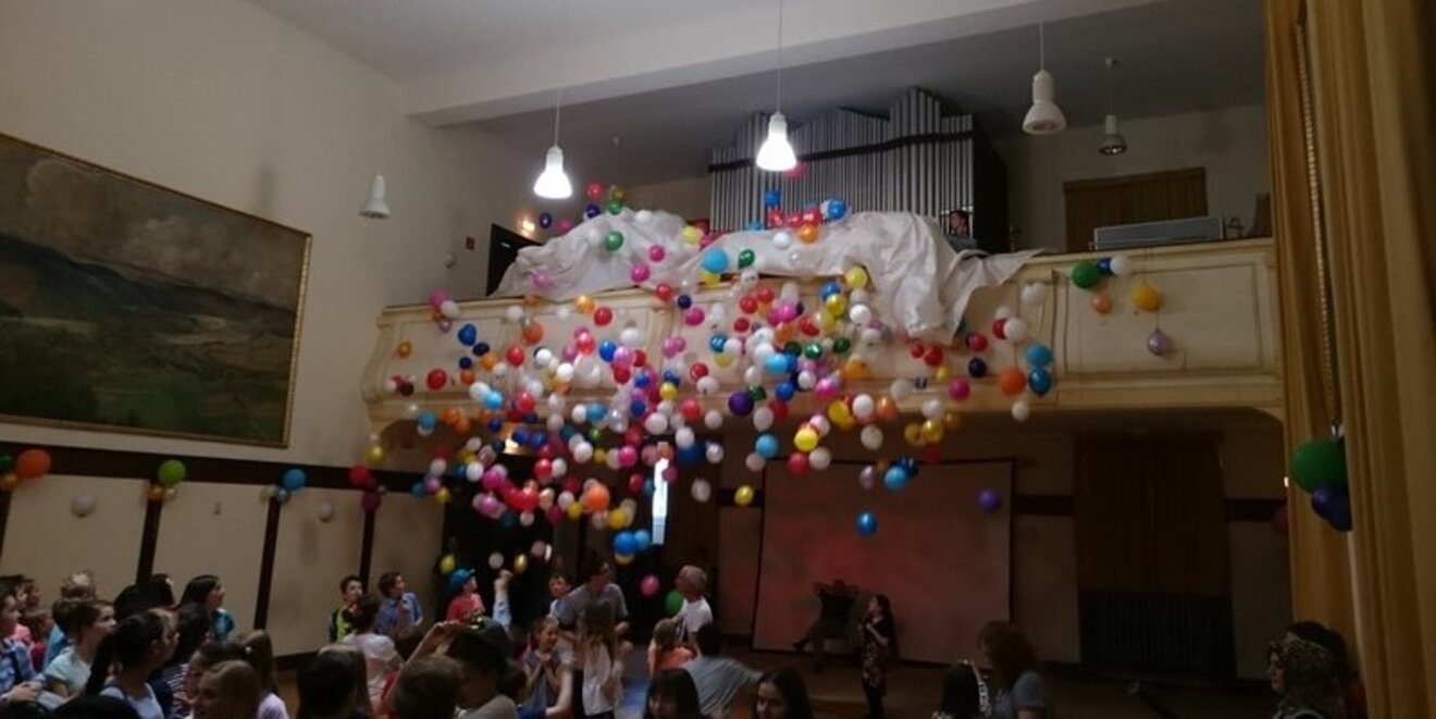 Eine Party mit viel Spaß, toller Musik und ganz vielen bunten Luftballons